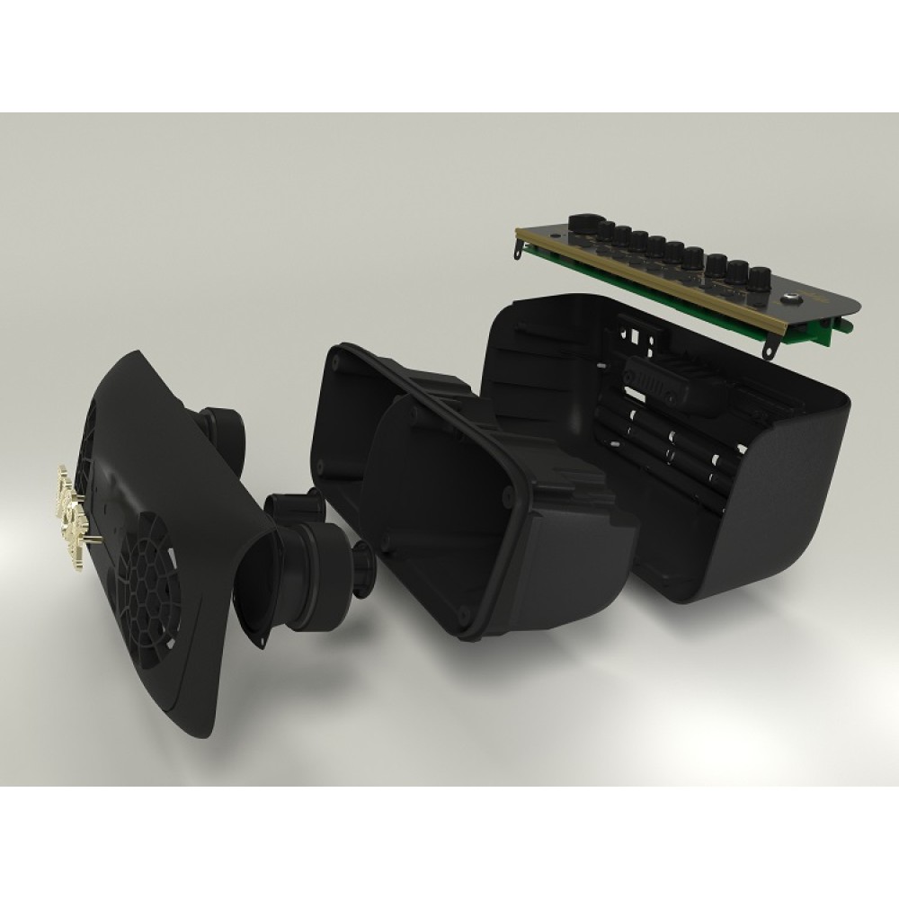 Adio, hem bir gitar/bas amfisinden gelen sert kabin rezonansını hem de evde tipi hoparlörlerin berrak sesini yansıtır. Kabin yapısında kullanılan yeni fikirler sayesinde çok amaçlı Adio, her iki senaryoda da üstünlük sağlıyor. Ünitenin boyutunu aşan bir ses yoğunluğu sağlayan bas refleks yapısı ve stereo hoparlörlerden beklediğiniz mekansal bir derinlik duygusunu yansıtan bir yapıya sahiptir. Hoparlörler, hem performans hem de dinleme için parlayan, güçlü ve yüksek kaliteli ses yaratan gelişmiş bir eğik gövde tasarımıyla yapılmıştır.