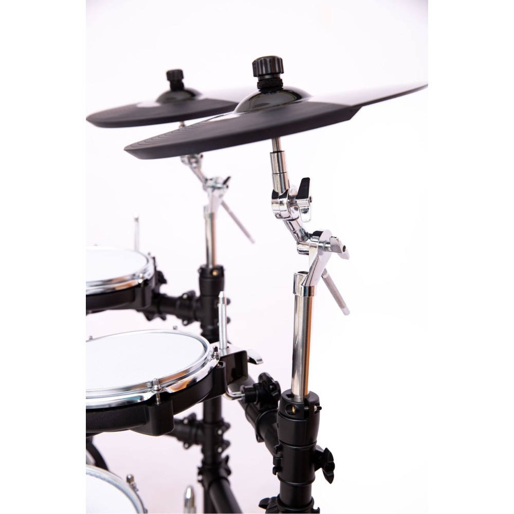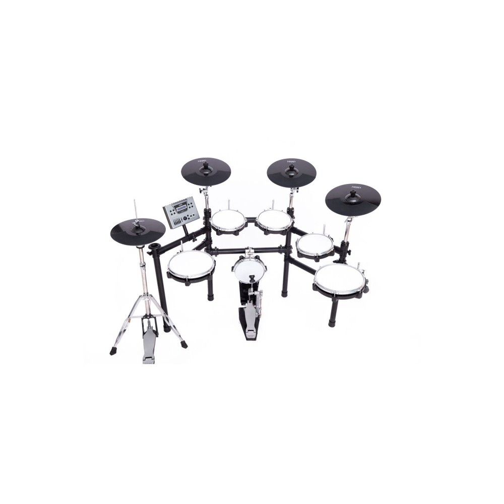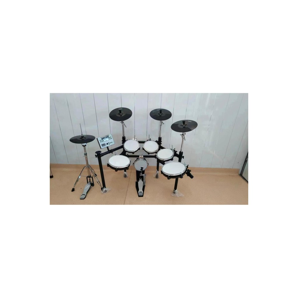 Davul standı paslanmaz çelik malzemeden üretilmiş metal stand. 20" kick+ zincirli kick pedalı 15" çift bölgeli trampet kasnak algılı 10" çift bölgeli tom 1 10" çift bölgeli tom 2 13" çift bölgeli tom 3 15" çift bölgeli flortom 15" çift bölgeli hareketli hi-hat sistemi Tutarak susturmalı 3 adet 15" çift bölgeli tutarak susturma özellikli crash silikon vuruş yüzeyi, çift tetikli susturucu fonksiyonu.
